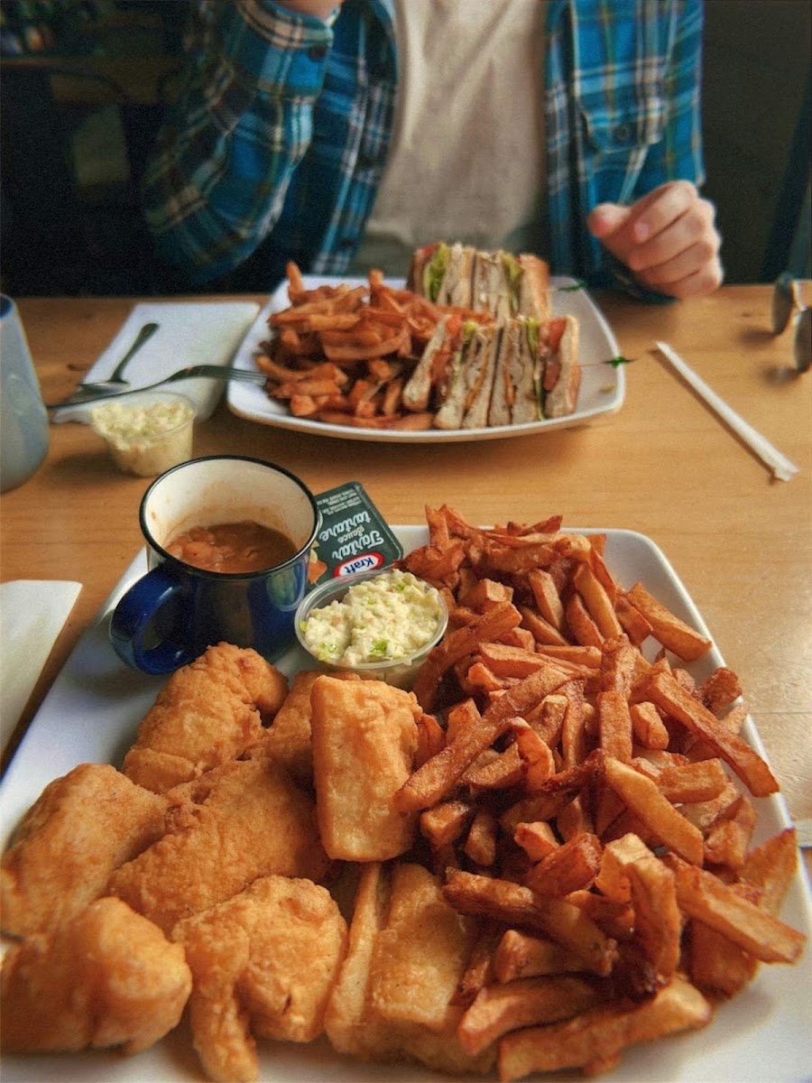 The diner’s signature dishes are the highlight of the menu, with the Fish and Chips taking the lead. Crispy, golden batter encases tender, flaky fish, served with a side of crispy fries. It's the perfect comfort food, ideal for a casual meal. If you’re looking for a classic breakfast, the Fisherman's Breakfast is an absolute must-try. This filling dish includes eggs, bacon, and savory sides, designed to keep you energized for the day ahead.